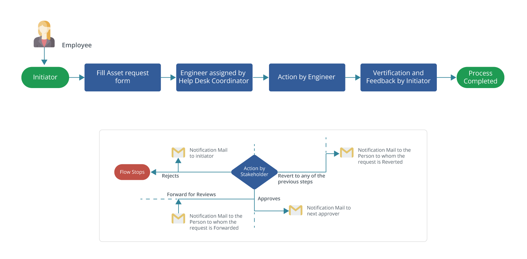 An automated IT support Helpdesk helps Employees to raise support tickets whenever they need to report an issue regarding IT hardware or software. This process eliminates the hassle of manual tracking and creates a transparent support system where the status of all support tickets can be monitored and resolved on time.